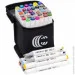 Набор двусторонних фломастеров / скетч маркеров на спиртовой основе. В наборе 36 штуки в сумке. С одной стороны обычный фломастер, с другой стороны скошенный маркер. Каждый цвет имеет свой цифровой код, который нанесен на колпачок маркера. Колпочки плотно закрывают маркер, препятствуя высыханию. Чернила на спиртовой основе хорошо впитываются в бумагу, поэтому рекомендуется использовать плотные листы или картон. Размер бокса см 10х12х20
