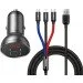 Автомобильное зарядное устройство Baseus Digital Display Dual USB 24W Gray 3-in-1 cable (TZCCBX-0G)