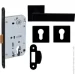 Комплект для межкомнатной двери в блистере Comit: ручка на розетте Kubic А + дверные накладки под ключ + механизм под цилиндр, черный матовый никель.