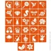 Коллекция простых трафаретов "Легкая красота", 27 трафаретов 5*5 см. Как сделать био-тату: выберите равномерный участок кожи; хорошо обезжирьте его; снимите с трафарета белую подложку (бумажная основа трафарета); приклейте трафарет на сухую и обезжиренную кожу; акуратно снимите прозрачную пленку и убедитесь, что трафарет (оранжевая часть) плотно приклеен к коже; нанесите равномерный слой клея для боди-дизайна и дайте ему просохнуть (от 30 секунд до 2 минут в зависимости от слоя клея); нанесите глиттер (блестки) на клей и плотно вбейте его кистью для глиттера; смахните излишки глиттера кистью-сметкой и снимите трафарет. Для чего нужен трафарет: если не умеете рисовать от руки; если нужно много и быстро рисовать; нужно создавать одинаковые и по размеру, и по внешнему виду рисунки - воспользуйтесь трафаретами Fresh Tattoo; трафареты Fresh Tattoo безопасны для кожи и подходят ля нанесения временных тату всех типов: глиттер-тату, хной, бархатом, пигментом, джагуа-гелем и так далее; подходят для химического или пескоструйного матирования изделий из стекла (чашки, бокалы, зеркала);