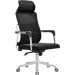 Кресло оснащено подголовником, обеспечивающим поддержку головы и шеи. Его форма идеально сочетается с естественным изгибом шеи, обеспечивая поддержку на протяжении всего времени использования. Устойчивые металлические подлокотники предотвращают усталость в области плеч и рук, гарантируя комфортное положение. Они прочные и имеют пластиковые накладки в цвет обивки кресла.