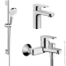 Дополнительные характеристики: смеситель для раковины Vernis Blend 71551000: длина излива – 10,8 см , высота – 14,3 см, максимальный расход воды при 3 бар: 5 л/мин, керамический узел смешивания, донный клапан – 1’, вид соединения: соединительные шланги G ; смеситель для ванны Vernis Blend 71440000: длина излива – 17,1 см, максимальный расход воды при 3 бар: 22,5 л/мин, керамический узел смешивания; душевой набор Vernis Blend cо штангой Crometta 26533400: размер душевого диска: 100 мм, тип струи: Rain, угол наклона может изменяться до 45°, максимальный расход воды при 3 бар: 14 л/мин, диаметр штанги: 22 мм | |