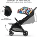 Эта прогулочная коляска оснащена большой корзиной под сиденьем, 5-точечными ремнями безопасности с накладками и регулируемой подставкой для ног. Она изготовлена из высококачественных материалов, таких как полиэстер для тканевых элементов, сталь и алюминий для рамы, а также eva + tpr для колес.