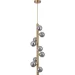 Современный стильный подвесной светильник на девять ламп с длинным вертикальным металлическим корпусом на котором расположены стеклянные плафоны-шары диаметром 8 см.