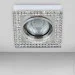 Точечный врезной декоративный светильник квадратной формы, питается от сети 220В, имеет механизм легкой замены лампы. Идеально подходит для низких потолков.