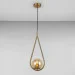 Декоративная, современная подвесная люстра на одну лампу с металлическим корпусом в виде капли и стеклянным плафоном формы шара.