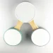 Потолочная светодиодная люстра в современном стиле, на три источника света круглой плоской формы, с деревянными элементами, без пульта управления.