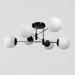 Потолочная люстра-молекула на шесть ламп со стеклянными плафонами-шарами.