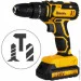 Комплект поставки включает в себя шуруповерт, две аккумуляторные батареи, зарядное устройство и набор оснастки. Всё это компактно расположено в удобном кейсе.