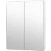 Под зеркалом расположена полка. Отделение за дверками разделено двумя горизонтальными полками на три равные части.
