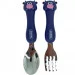 Для того чтобы ваш ребенок мог учиться самостоятельно есть, советуем приобрести такой набор детских столовых приборов вилка и ложка в футляре. Яркий дизайн и удобная рукоять помогут сделать процесс кормления не только веселым, но и безопасным. ПРЕИМУЩЕСТВА: - имеет яркий и привлекательный дизайн; - мордочки животных на кончиках рукояти; - вилочка безопасна для малыша; - качественный контейнер для приборов, который защитит их от загрязнения; - удобно держать в маленькой ручке. ХАРАКТЕРИСТИКИ: - выполнена из пищевого силикона и пластика; - материал приборов – пищевая гигиеническая нержавеющая сталь; - материал рукояти – пищевой силикон;