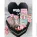 В состав набора входит черный деревянный бокс с наполнителем, розовый шоколад Millennium, конфеты Sorini, имбирные пряники, крем-мёд, патчи под глаза Ebug, свеча Jysk, стаканы English Home.