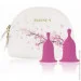 в наборе сразу две чаши, размера S и M: для старта и дней со скудными выделениями подойдет маленькая, для более опытных пользовательниц и дней с обильными выделениями — средняя;