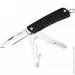 Среди инструментов вы сможете найти клинок с гладкой заточкой режущей кромки, небольшие подпружиненные ножницы и отвертку с прямым шлицем, которая в свою очередь скомбинирована со стропорезом и открывалкой.