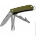 Среди инструментов вы сможете найти клинок с гладкой заточкой режущей кромки, небольшие подпружиненные ножницы и отвертку с прямым шлицем, которая в свою очередь скомбинирована со стропорезом и открывалкой.