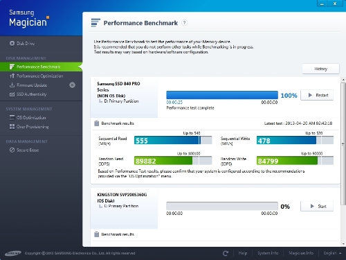 Производитель наделил модель «Samsung SSD 840 Pro» увесистой россыпью программного обеспечения, объединив его, для большего удобства пользователя, в оболочку под названием «Samsung Magician». При этом программная оболочка «Samsung Magician» оказалась более удобной и совершенной даже по отношению к непререкаемому лидеру «Intel SSD Toolbox», который предопределил выбор многих потребителей в пользу обслуживаемых им твердотельных устройств американской корпорации «Intel». Отныне подобным притяжением стал обладать новый лидер среди программных оболочек для твердотельных устройств – программный комплекс «Samsung Magician», в котором потребителей более всего впечатлила легкость пользования.