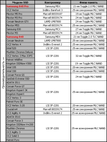 Да и в техническом плане твердотельные накопители «Samsung SSD 840 Pro» превосходят большинство конкурирующих решений. Корейский производитель принял решение воспользоваться наличием прекрасно себя зарекомендовавшего решения прошлого поколения в качестве платформы для формирования новых серий, а потому не стал вносить в них революционные изменения. Например, скорость чтения SSD «Samsung» 830-й серии составляет 520 мегабайт в секунду, у представителя 840-й серии этот параметр равен 530 мегабайт в секунду, а накопитель «профессионального» сегмента 840-й серии выдает 540 мегабайт в секунду. Эти цифры говорят об отсутствии существенных различий в производительности наиболее востребованного пользователями эксплуатационного параметра у трех вышеперечисленных моделей. Поэтому можно утверждать, что ранжировать по скорости чтения их совершенно невозможно, хотя маркетинговые службы конкурентов зачастую даже такие мизерные отрывы своих накопителей готовы представить как гигантский прорыв. Основное отличие между тремя братьями сосредоточено в параметрах записи на накопитель. Здесь наиболее медленной является модель «Samsung SSD 840», достигшая уровня только в 240 мегабайт в секунду, в то время как старший брат «Samsung SSD 840 Pro» покорил рубеж 520 мегабайт в секунду. Их предшественник «Samsung SSD 830» находится примерно посередине с результатом в 400 мегабайт в секунду. Поэтому именно скоростью записи и будут обусловлены предпочтения того или иного накопителя потенциальными покупателями. Наиболее сбалансированным решением в этом случае выступает именно старшая модель «Samsung SSD 840 Pro». Ее параметры удовлетворят подавляющее большинство пользователей, а менее скоростные модели следует предпочесть исключительно в случае малой востребованности режима записи информации на накопитель или в случае ограниченности бюджета.