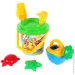 Песочный набор "ТехноК 5". В наборе: ведро (20 х 17,5 х 16), грабли (19,5 см), лопатка (21 см), лейка (14 х 8 х 13 см), сито и 2 кулича.