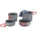 Набор посуды из анодированного алюминия для 1-2 человек, состоит из двух кастрюль, крышек-кастрюль и тряпки для мытья посуды. Внутренний объем меньшей кастрюли позволяет транспортировать газовый баллон 230 г и маленькую горелку. Набор упакован в удобный сетчатый чехол.