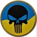 - Арт Ідея Шеврон Патч "Punisher", ПВХ з липучкою, білий на синьо-жовтому фоні, круглий, діам.63мм 120₴/шт.