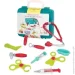 Зручний кейс містить аксесуари, необхідні для маленького доктора: фонендоскоп, отоскоп для огляду вушок, молоточок для перевірки рефлексів, медичне дзеркало, термометр, ножиці, пінцети, шприц, підставка для інструментів.