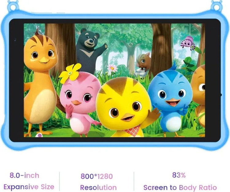 Планшет Blackview Tab 50 Kids оснащений 8-дюймовим HD-екраном з фантастичною якістю зображення та широким кутом огляду. Екран чутливий до дотику і має режим захисту очей, який зменшує випромінювання синього світла, щоб запобігти зоровому стомленню найменших у будинку.