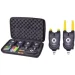 Набір сигналізаторів із пейджером. Регулювання тональності, чутливості та гучності сигналу (6 режимів), Світлова та звукова індикація клювання. Автоматичний нічний режим, світлова індикація напряму клювання. Вбудований передавач, що передає сигнал безпосередньо на пейджер під час клювання Роз'єм для підключення електронного свінгера. Плата сигналізаторів залита силіконом, що значно подовжує їх термін служби. Комплект укомплектований двома варіантами ріжок низькими та високими, які ви можете використовувати на власний розсуд. Високі ріжки запобігають стягуванню вудилища убік при бічній клюванні. Сигналізатори із пам'яттю. Пейджер на тильній стороні має магніт. Радіус дії сигналу до 150м. У комплект входить жорсткий кейс, батарейки.