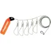 Набір сильних куканів з пружинними фіксаторами. Кожен кукан прикріплений до сталевого троса за допомогою вертлюга. Кукани вільно переміщаються тросом, завдяки чому для закріплення чергового трофею не потрібно витягувати з води весь улов. На тросі з одного боку є карабін для кріплення, а з іншого – спеціальний поплавок. Довжина троса – 6 метрів. Поставляється в прозорому чохлі, що не промокає.