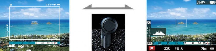 Зйомка через видошукач - це традиційний і простий спосіб фотографування. Досвід його використання послужив основою при створенні нашого гібридного видошукача, що дозволяє миттєво перемикатися між оптичним (OVF) і електронним (EVF) видошукачем.