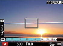 У видошукачі панель покажчика відстані відображається поруч зі шкалою глибини різкості і значеннями діафрагми, надаючи корисні рекомендації за фокусуванні. Для забезпечення високої точності в режимі ручного фокусування просто натисніть на диск управління і підтвердіть різкість шляхом наближення точки фокусування. У цієї корисної функції також передбачена можливість вибору коефіцієнтів масштабування. Прі натисканні на кнопку блокування автоекспозиції і автофокусування активується вбудована функція допомоги при фокусуванні, яка дозволяє виконати автоматичне фокусування об'єкта в рамці. *