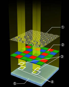 - 4: Датчик фазової детекції / піксель зеленого фільтра