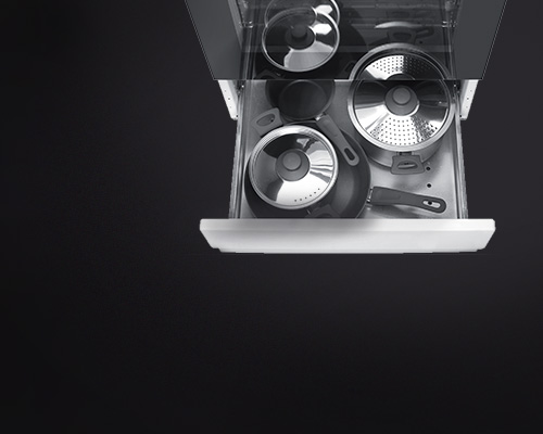 Щоб полегшити роботу на кухні, плити Hansa оснащені практичним ящиком на роликових направляючих, розташованим під камерою духовки. Ви можете зберігати каструлі, тарілки або інший посуд у ящику, щоб вони завжди були під рукою.