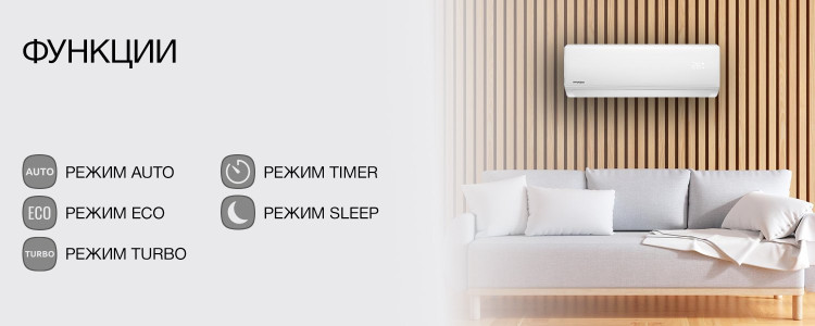 - Функція ECO — регулювання обертів вентилятора для економного енергоспоживання.