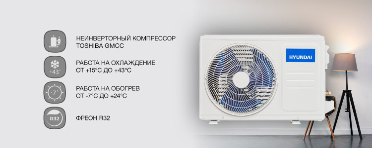Система оснащена неінверторним компресором Toshiba GMCC, який забезпечує стабільну роботу обладнання за зовнішньої температури до -7 °C. Зважаючи на кліматичні умови України, ця серія кондиціонерів є раціональним вибором як для охолодження влітку, так і для обігріву в міжсезоння. Як холодоагент використовується озонобезпечний R32 — фреон нового покоління, що відповідає сучасним екологічним стандартам.