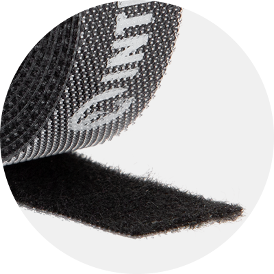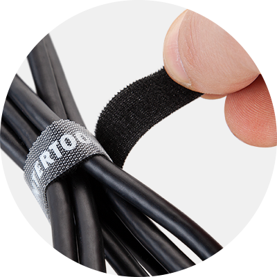 З одного боку стрічки знаходиться липучка, але в зворотній поверхню для липучки. Якщо стрічка дуже довга, її можна відрізати, і використовувати частину для зв'язування кабелів також само. Виготовлений хомут з ??нейлону та поліестеру з поліуретановим покриттям.