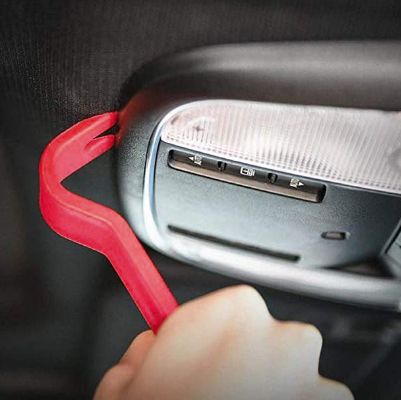 Набір включає 6 предметів різної форми, з круглими, гострими, широкими і вузькими краями, які дозволяють працювати з більшістю панелей обшивки. На трьох знімачах є прорізи для демонтажу кріплення кліпс, також в кожному інструменті є отвір для його зручного зберігання на стіні. На знімачах відсутні задираки та шви, які можуть пошкодити обшивку або травмувати майстра.