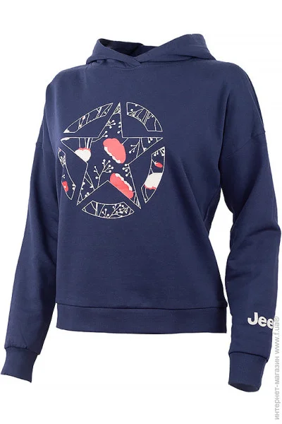 Опис Jeep Жіноче Худі HOODED CROPPED SWEATSHIRT STAR Botanical Print Синій XS (O102607-A184 XS)