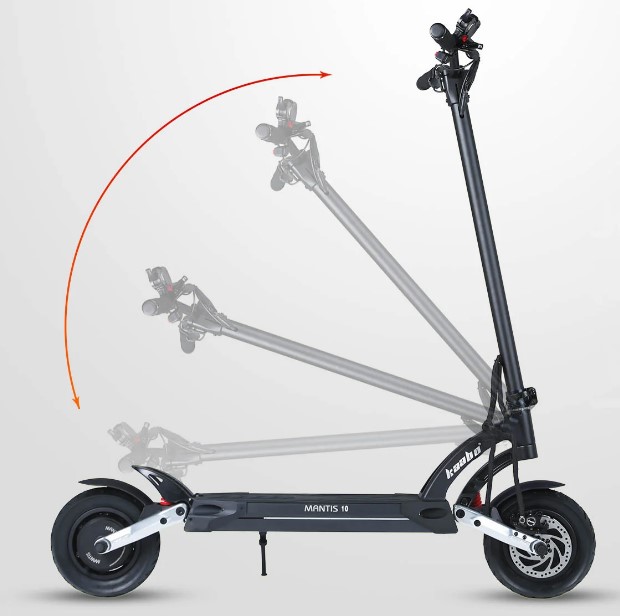 Електросамокат Mantis 10 має легку раму з авіаційного алюмінієвого сплаву 6061/6082 і важить лише 25 кг. Каркас викуваний з цільного шматка, що робить його не тільки легким, але й дуже міцним. Алюміній - чудовий вибір для приміського самоката, оскільки він набагато жорсткіший за сталь і забезпечує плавність ходу. Крім того, рама Mantis 10 складана, що спрощує його зберігання і транспортування.