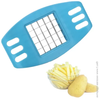 Картоплерізка призначена для того, щоб швидко подрібнити як картоплю, так і будь-які інші продукти (сир, ковбасу, буряк, моркву, різні фрукти) і отримати з них гарні і акуратні кубики або бруски.
