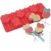 Силиконовая форма для конфет на палочке Сердечки - прямоугольный планшет с 6 ячейками в виде двойных сердечек, предназначенный для приготовления конфет, льда. Форма подходит для работы с желе, карамелью, шоколадом и другими кондитерскими смесями.