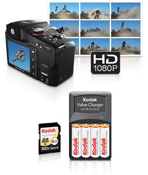 - В Комплект входять потужні, ємні попередньо заряджені Ni-MH акумулятори Kodak і зарядний пристрій.