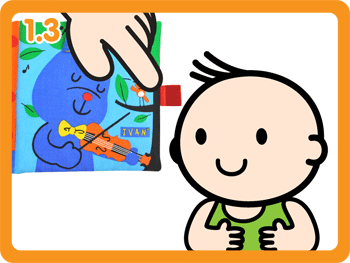 Яскрава, двостороння весела книжка розвеселить і розповість багато цікавого. Книжку можна прикріпити до ліжечка як в формі трикутника, так і в розкладеному вигляді. З одного боку малюка будуть розважати улюблений Патрік з кумедними вухами з м'якого велюру, веселий ведмедик Боббі, їсти тортик і зайчик Іван, красиво підігравати На скрипці пташиного, яка сидить на гілочці і співає (всередині захована пищалка). З іншого боку карапуз зможе спостерігати своє відображення в безпечному дзеркалі, пограє з кішечкою Мі-Мі і рибками, одна з яких висить на яскравій стрічці або пограти в хованки з футболістом ведмедиком Семом (в лапках Сема захована хрустяшка). Крім того у книжки є різнофактурний гризунчик в формі зірочки. Книжку зручно брати з собою на прогулянку або в дорогу.