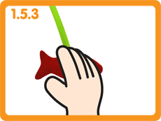 Метод: Щасливий трикутник виготовлений з різних матеріалів. Заохочуйте дитину торкатися і відчувати різні текстури, і жувати прорізувач.
