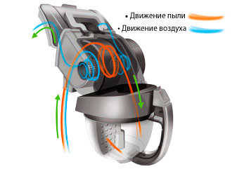 циклон система ефективно відокремлює частинки пилу від чистого повітря, дозволяючи зберігати постійну потужність всмоктування.