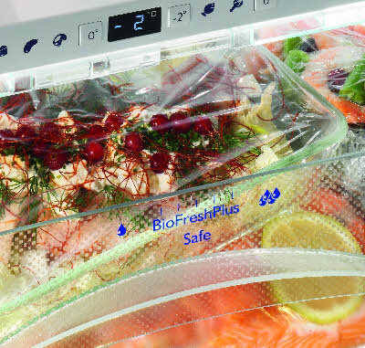 Контейнери секції BioFresh-Plus з електронною системою управління дозволяють налаштувати найбільш оптимальні умови зберігання, встановивши необхідний рівень температури для кожного контейнера окремо. У верхньому контейнері можна знизити температуру до -2 ° С. Одночасна установка зниженою вологості дозволить зберегти тривалий час рибу і морепродукти. Установка в верхньому контейнері температури на рівні +6 ° С та Високої вологості повітря дозволить створити ідеальні умови для зберігання тропічних фруктів.