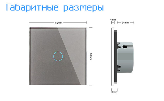 Габаритні розміри діммера Livolo 80 * 80 * 32 мм