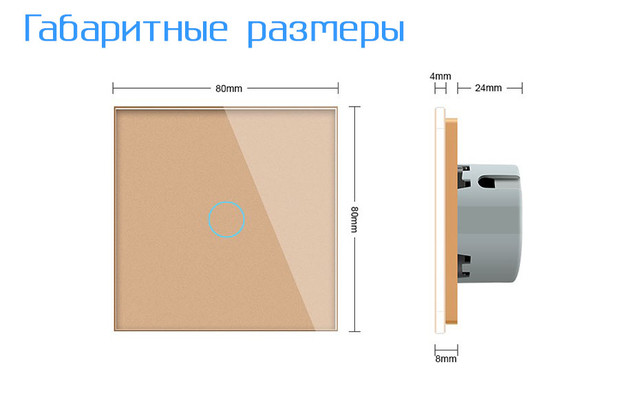 Габаритні розміри діммера Livolo 80 * 80 * 32 мм