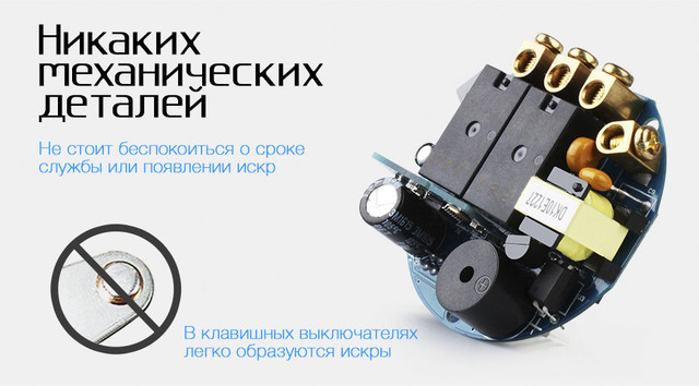 Відсутність механічних деталей в сенсорних вимикачах виключає можливість утворення іскор. У клавішних вимикачах легко образуютя іскри, які можуть првесті до виникнення пожежі.