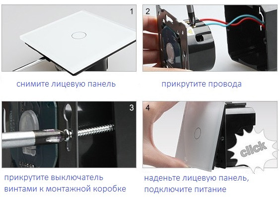 - Немає необхідності проведення будь-яких додаткових монтажних робіт для Установкисенсорного діммера, весь монтаж проводиться за старою звичною схемою підключення і не вимагає додаткових витрат;