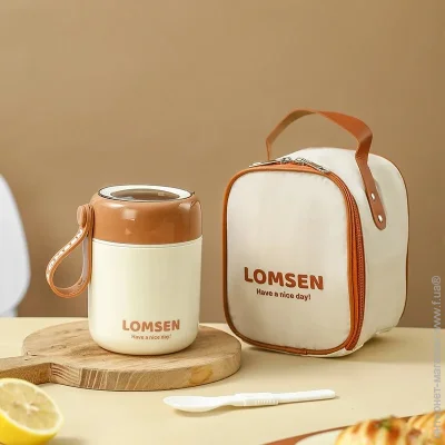 Відгуки More Ланч-набір 3-в-1 Lomsen 450 мл - термо ланчбокс-супниця з ложкою та сумкою, коричневий